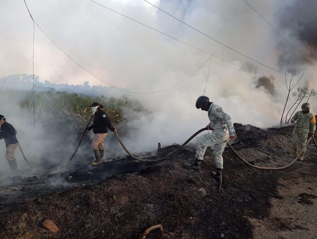 El director del área, Luis Blanco, lideró las tareas de contención con apoyo de bomberos locales y personal de la Secretaría de Protección Civil estatal.