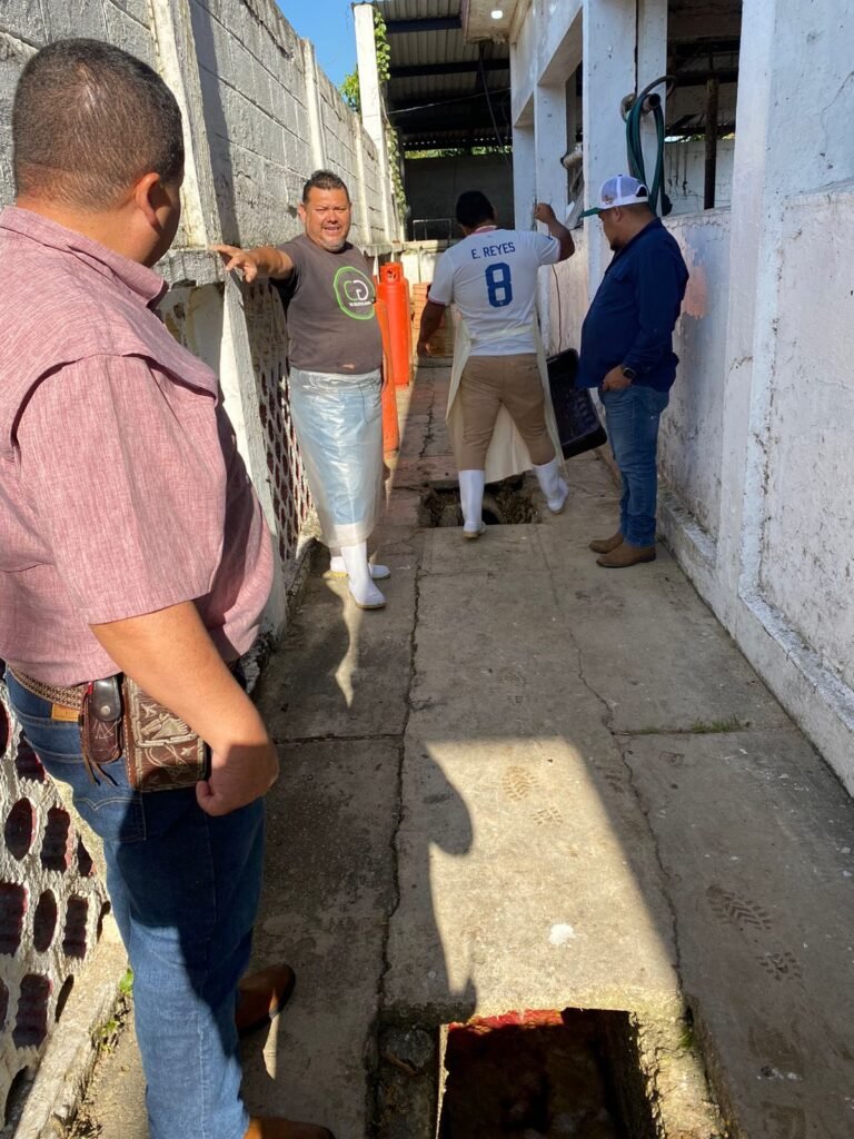 Las Choapas, Ver.– Autoridades municipales realizaron trabajos de reparación en el canal de registro del Rastro Municipal, con el objetivo de mejorar las condiciones de higiene, seguridad y funcionamiento de este espacio de servicio público.