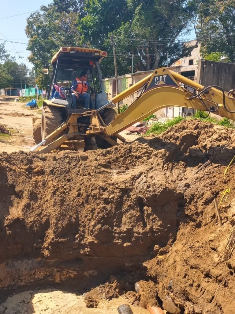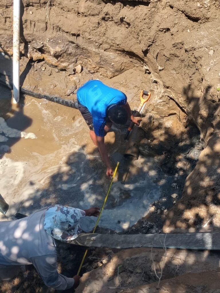 Como primera etapa de los trabajos, cuadrillas realizaron la reparación de una descarga domiciliaria y la rehabilitación de la línea de drenaje sanitario ubicada sobre la calle Malpica, entre Gloria Corrales y Pedro Infante, en la colonia Emiliano Zapata.