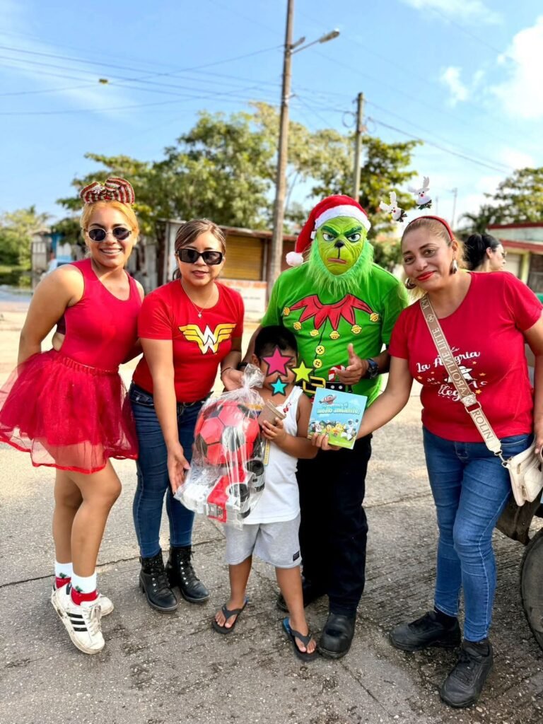 Desde temprana hora, voluntarios, grupos deportivos, asociaciones civiles, comerciantes e integrantes de la iniciativa ciudadana recorrieron diversas colonias del municipio, entre ellas Santa Rosa, Fidel Herrera, Esperanza, Popular Morelos, Independencia y Francisco Villa, donde los menores recibieron juguetes en un ambiente festivo y de convivencia comunitaria. Además, se realizó una entrega especial en las instalaciones del Ejército de Salvación.