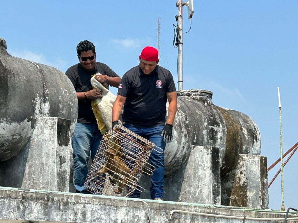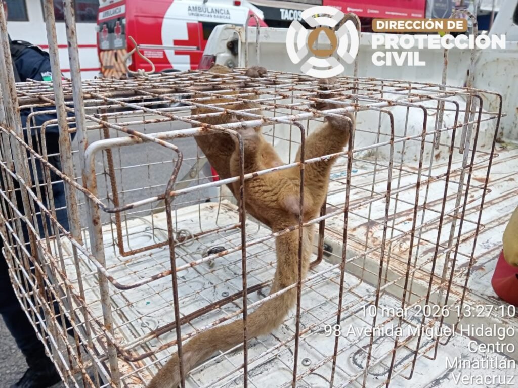 Tras recibir el reporte ciudadano, personal de emergencia de Minatitlán acudió al domicilio señalado, donde confirmaron la presencia del mamífero y realizaron un operativo controlado para asegurar al animal sin poner en riesgo a la familia ni al propio ejemplar.