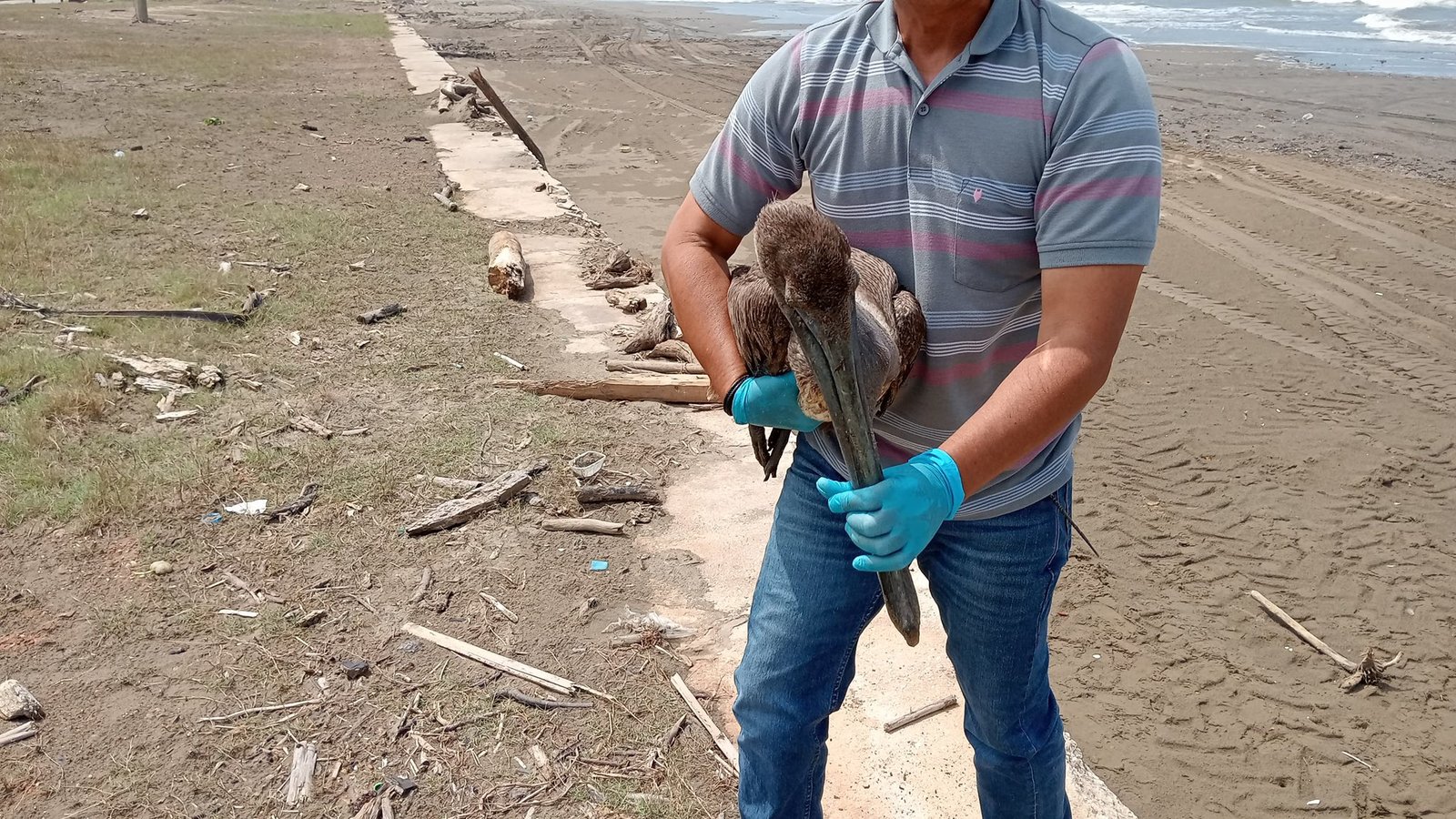 Rescatan pelícano intoxicado en playas // Coatzacoalcos