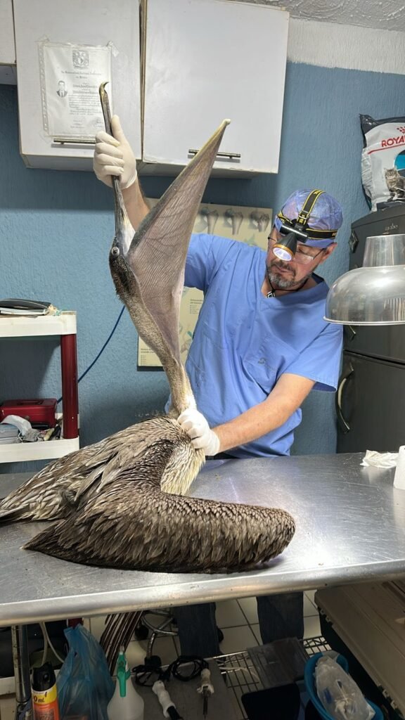 Coatzacoalcos, 13 de marzo de 2026.– Un ejemplar de pelícano fue rescatado en la zona de playa a la altura de las calles 16 de Septiembre y Allende, luego de presentar signos severos de debilidad y posibles rastros de contaminación por hidrocarburos.