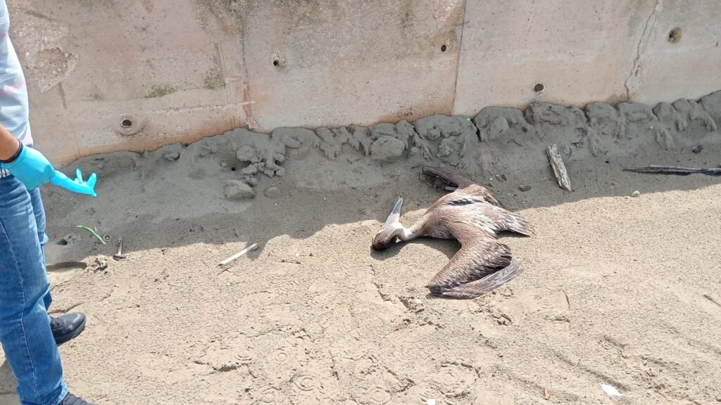 La principal línea de investigación sugiere que el pelícano pudo haber sufrido intoxicación derivada del contacto con hidrocarburos o agentes contaminantes en el mar, situación que habría afectado su capacidad para volar y alimentarse.