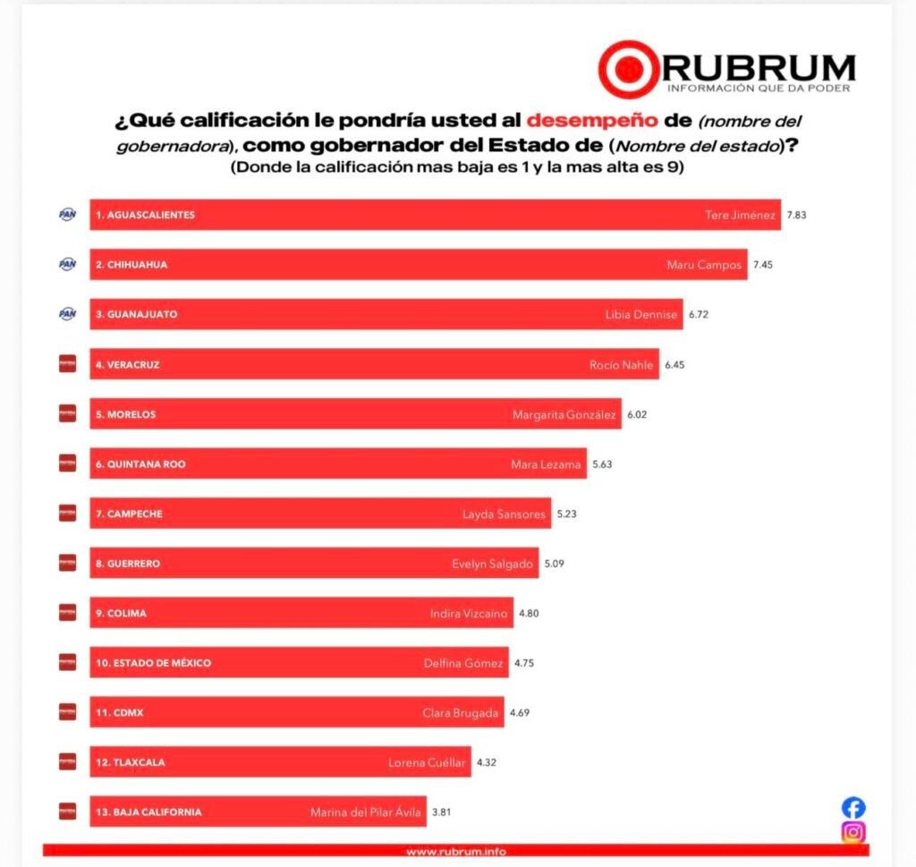 Con estos resultados, Veracruz se mantiene dentro de los primeros cinco lugares a nivel nacional en la evaluación de gobernadoras, posicionando a Rocío Nahle como una de las mandatarias estatales mejor calificadas en el país.