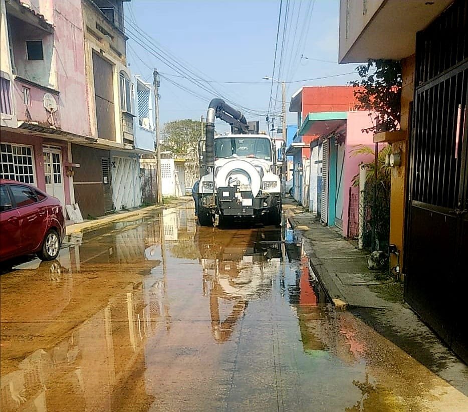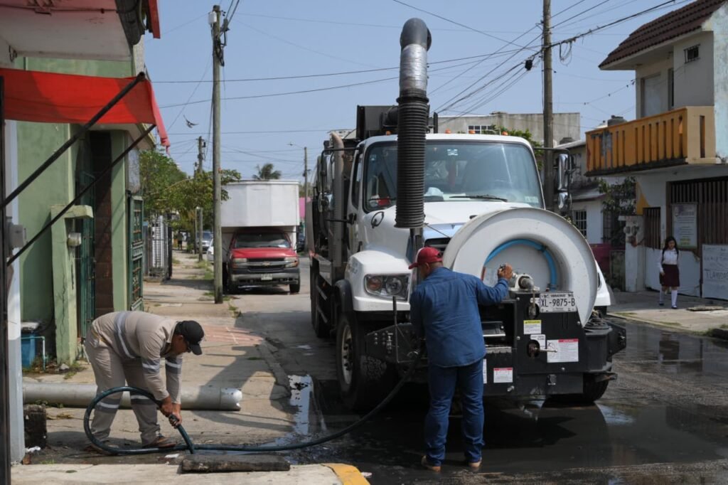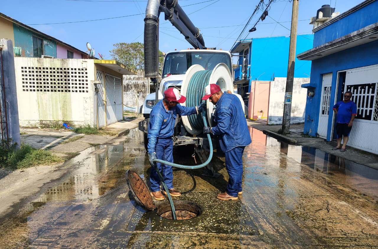 Con el respaldo del Gobierno del Estado, los trabajos se realizan mediante unidades tipo Vactor, equipo especializado que permite efectuar la limpieza integral de la red sanitaria a través de succión y presión de agua.