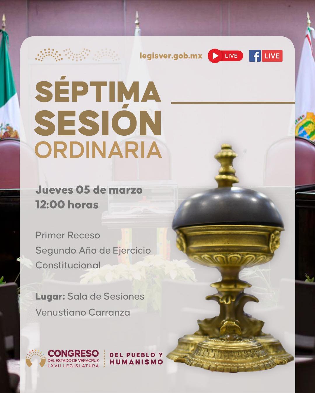 Xalapa, Veracruz, 5 de marzo de 2026.– El Congreso del Estado de Veracruz llevó a cabo este jueves la Séptima Sesión Ordinaria del Primer Receso correspondiente al Segundo Año de Ejercicio Constitucional, en la Sala de Sesiones “Venustiano Carranza”.
