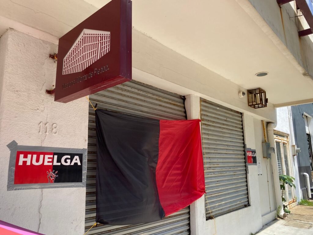La bandera rojinegra continua colgada en la sucursal de “Monte de Piedad” en Coatzacoalcos, y en las casi 300 sucursales que existen en todo el pais.