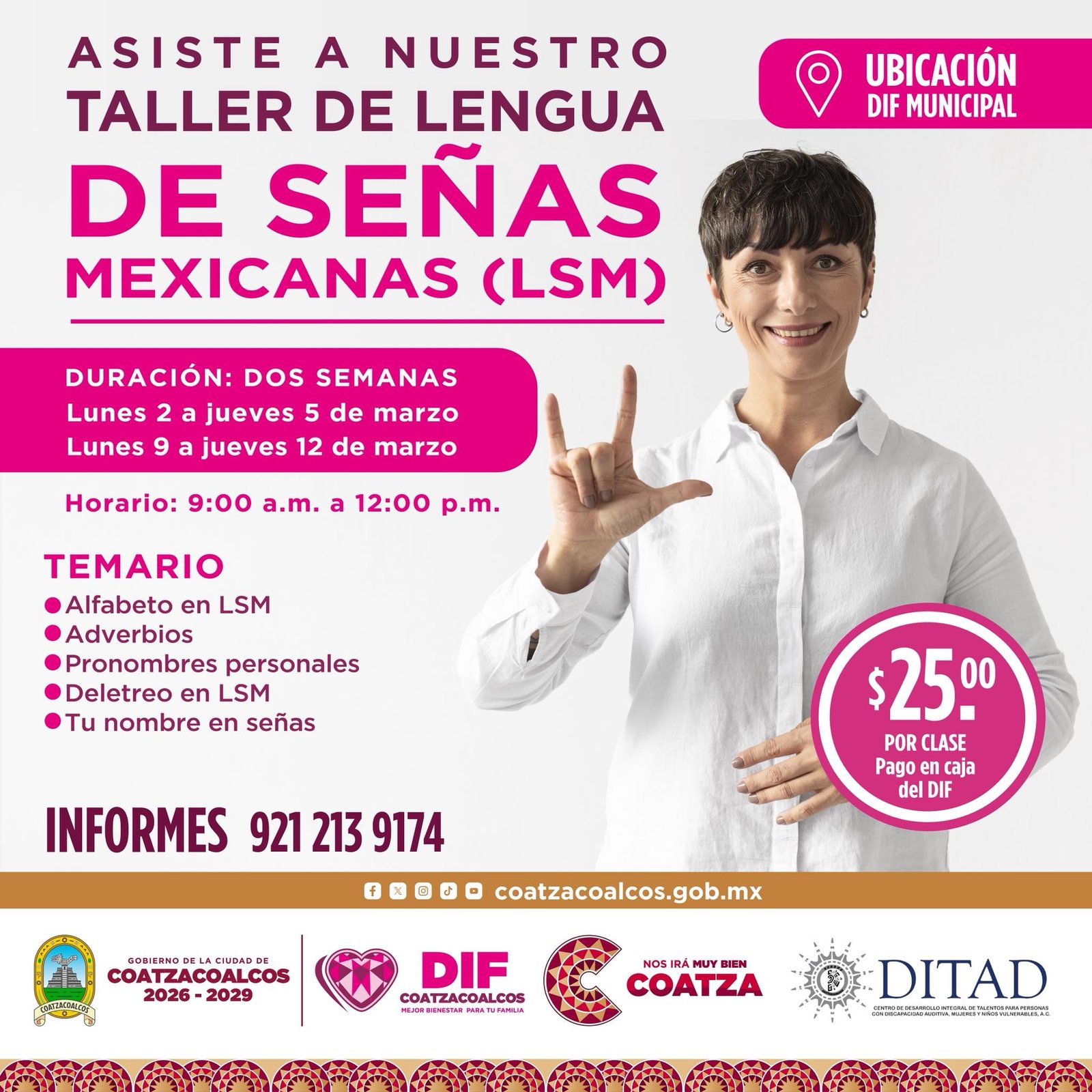 Coatzacoalcos, Ver.– El DIF Coatzacoalcos invitó a la ciudadanía a participar en el Taller de Lengua de Señas Mexicanas (LSM), con el objetivo de fomentar la comunicación incluyente y la empatía hacia las personas con discapacidad auditiva.