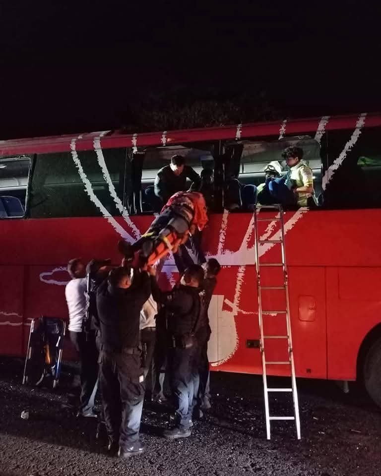 Paramédicos de Caminos y Puentes Federales (Capufe), Protección Civil Oluta y Cruz Roja delegación Acayucan que contribuyeron al rescate de más pasajeros, trasladaron primero doce heridos al hospital “General Miguel Alemán González” de Oluta – Acayucan.