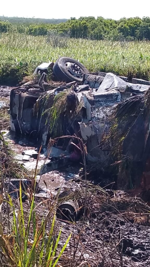 El impacto fue tan fuerte que la cabina del tráiler quedó prácticamente destruida, atrapando a sus ocupantes entre los restos del vehículo.