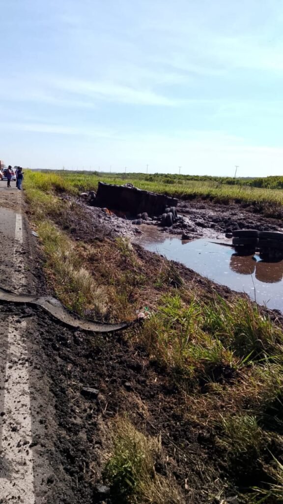 Una falla mecánica es lo que presuntamente habría ocasionado que acabara dentro del pantano un tráiler que transportaba gravilla, con rumbo hacia el puerto de Coatzacoalcos.