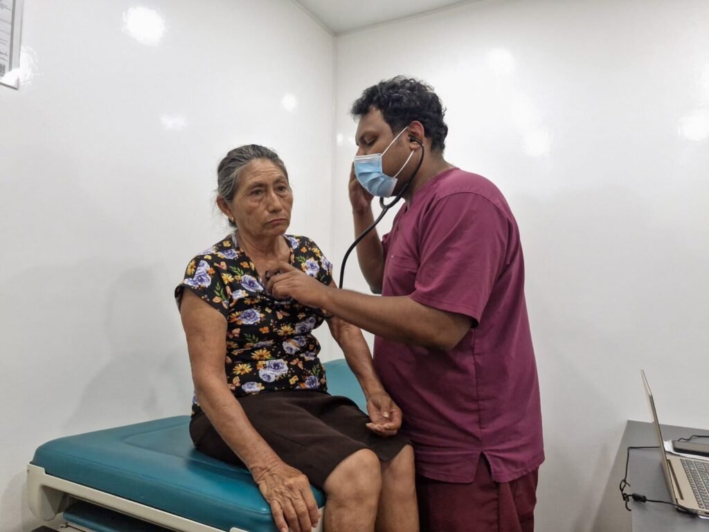 Además, se realizan exámenes físicos básicos, como medición de peso, talla, presión arterial, temperatura y saturación de oxígeno. A los pacientes también se les entregan kits dentales.